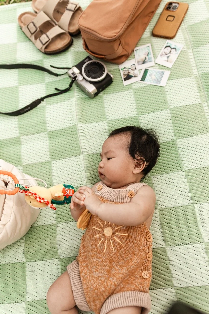 Sharing these super sweet photos of our trip to the park. It was my daughter’s first time out and about here! We set up our checkered mat and hung around the grass while my husband went for a run.